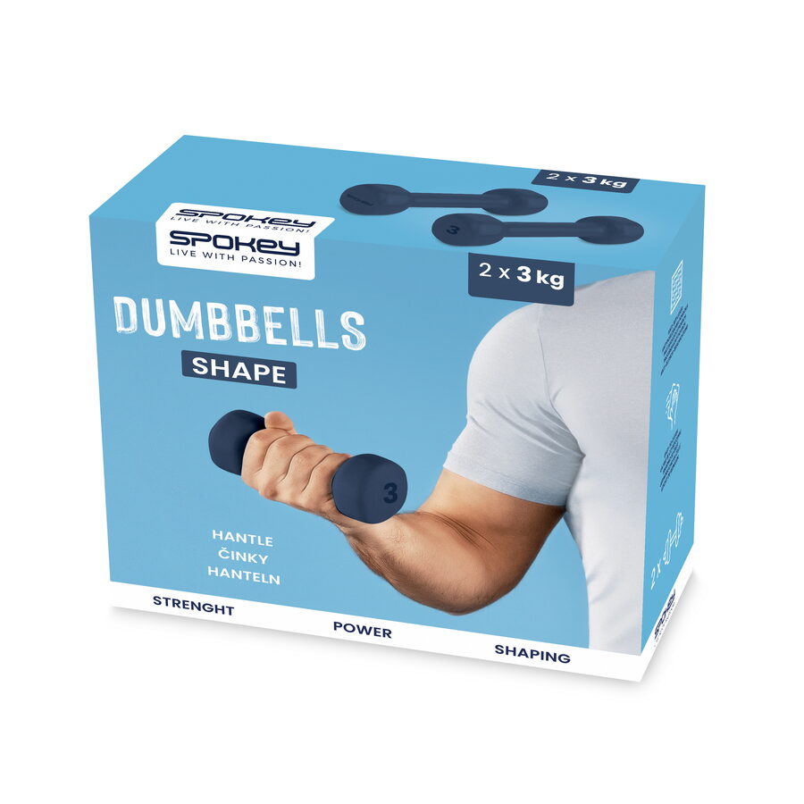 Činky mohou tvořit základ našeho tréninku nebo být doplňkem každodenního cvičení v různých disciplínách. Dávají nám nespočet možností, protože nám umožňují přizpůsobit typ a kvalitu tréninku našim očekáváním, předpokladům a schopnostem. Proto jsou ideální jak pro lidi, kteří se sportem teprve začínají, tak pro zkušené profesionály. Sada SHAPE se skládá ze 2 činek o stejné hmotnosti. Dostupnost v různých hmotnostních variantách (od 0,5 do 4 kg) vám umožní zvolit si optimální zátěž pro své tréninkové cíle.