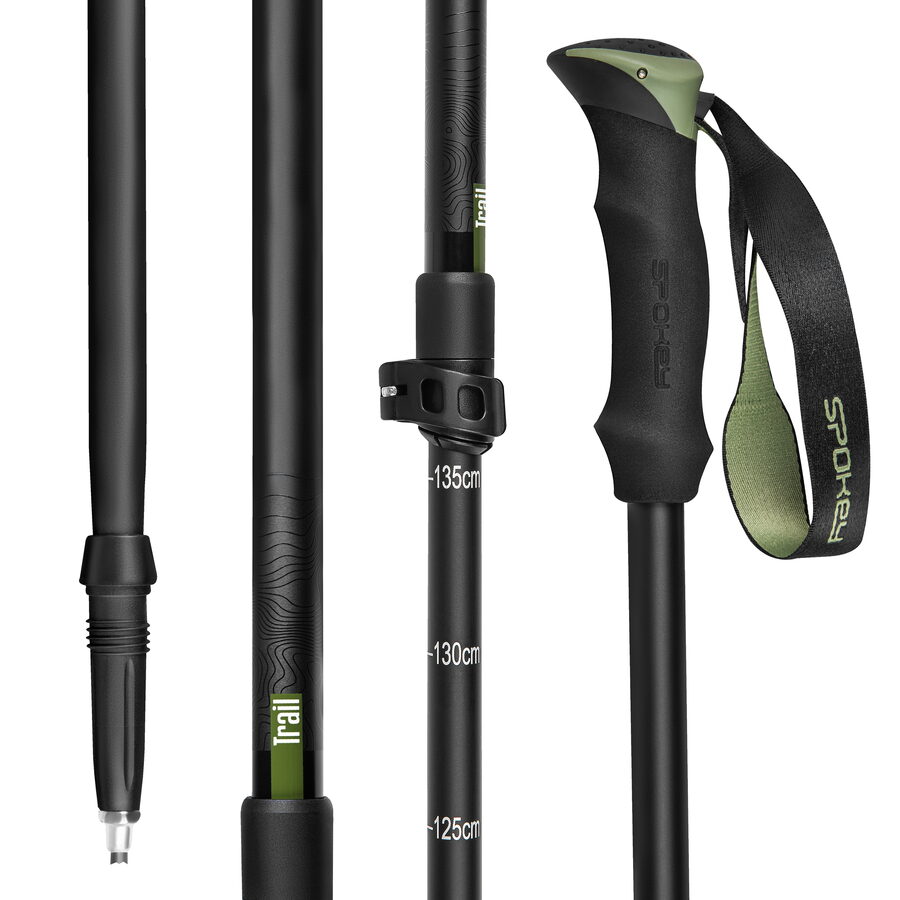 Aby vám hole Spokey TRAIL sloužily co nejdéle a zajistily vám plný komfort a bezpečí, stačí dodržet několik jednoduchých zásad. Hole používejte pouze k chůzi a jako oporu na nerovném terénu - nejsou určené pro lezení, jako opora při skocích nebo pro přenášení velké zátěže. Před každým použitím zkontrolujte, zda jsou části hole správně dotažené a teleskopický systém pevně zajištěný - nikdy nepřekračujte maximální délku vyznačenou na holi.