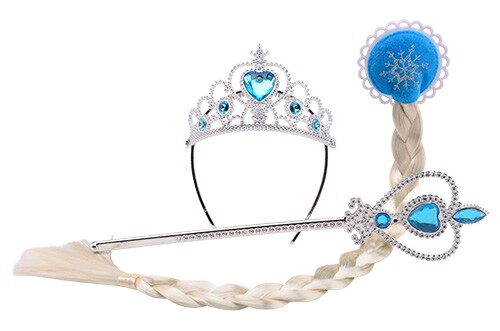 Spona s copem a příslušenství pro Ledovou princeznu – sada obsahuje spolu s copem, čelenku a hůlku. Vše v designu Ledové princezny.