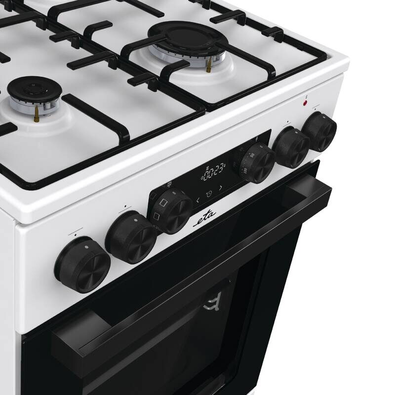 Moderní sporák ETA 279390000 s plynovými hořáky, prostornou 70l troubou a nabídkou až 9 funkcí.