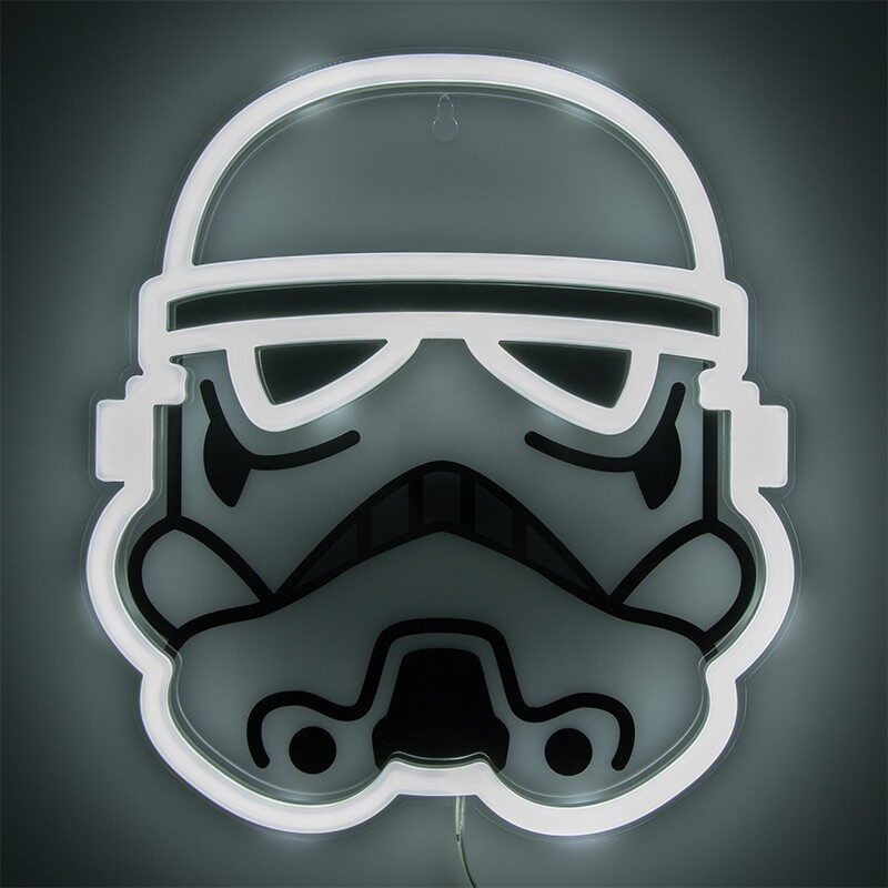 LED Neon světlo s motivem masky Stormtroopera. Světlo je určeno k zavěšení na zeď, napájeno pomocí USB kabelu. Světlo můžete spínat pomocí vypínače na kabelu. Adaptér není součástí balení.