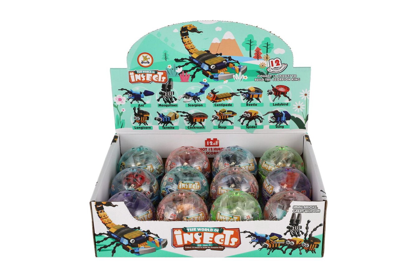 Stavebnice brouk plast 6cm mix druhů v kouli 12ks v boxu
