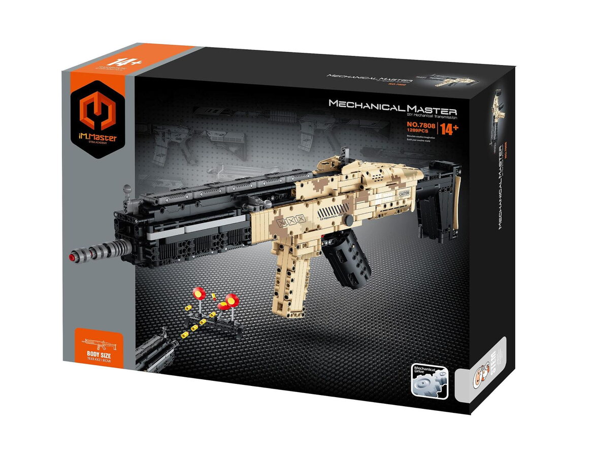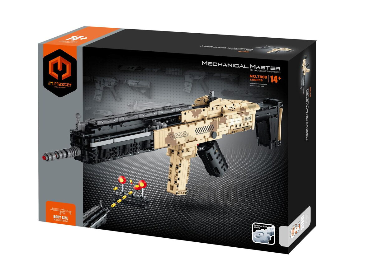 Pro všechny milovníky technických stavebnic a realistických modelů. Tato rozsáhlá sada iM.MASTER umožní sestavit detailní model automatické pušky se spoustou mechanických prvků. Velká stavebnice o 1289 dílcích. Realistické provedení inspirované taktickými zbraněmi. Obsahuje mechanické funkce – pohyblivé části a simulace střelby s projektily. Detailní konstrukce s autentickými prvky (zásobník, hlaveň, pažba aj.). Rozměry sestaveného modelu: cca 70 × 21 × 6,5 cm.