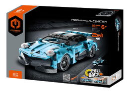 Stavebnice iM.MASTER policejní auto na zpětné natažení plast 199 dílků v krabici 29x20x6cm