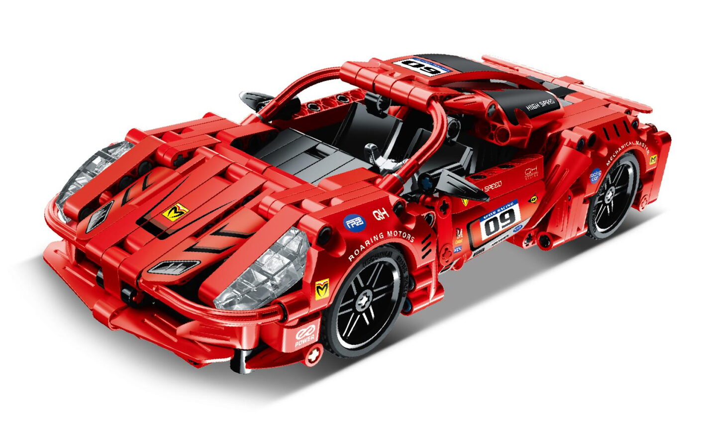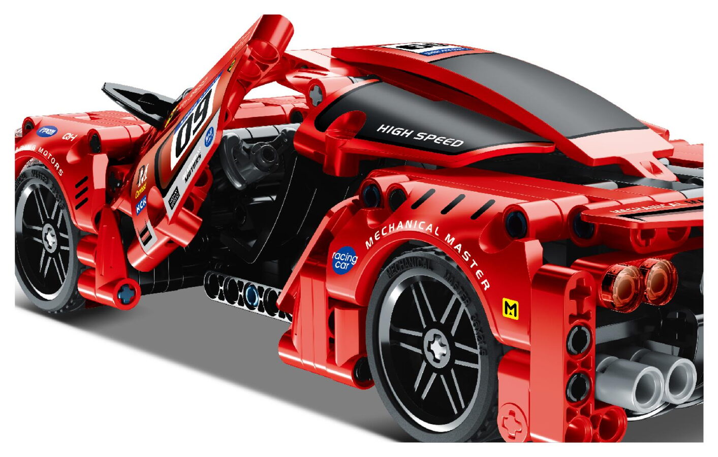 Stavebnice iM.MASTER závodní auto na zpětné natažení plast 437 dílků v krabici 31x23x7 cm
