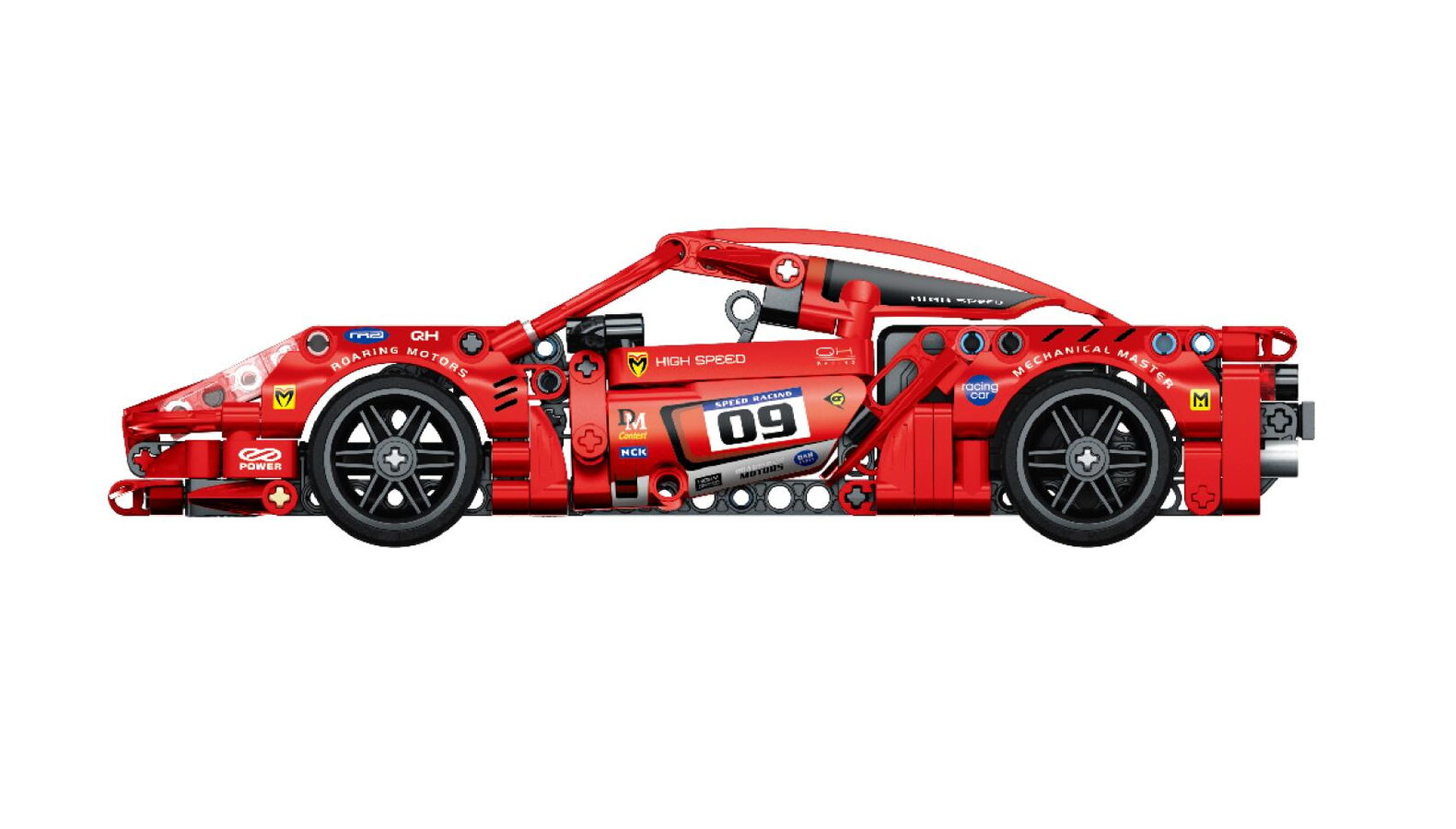 Stavebnice obsahuje 437 dílků, ze kterých můžete postavit auto, na zpětné natažení, plast, v krabici 31 x 23 x 7 cm, věk 6+