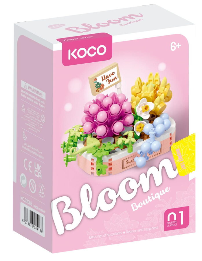 Objevte kreativní svět stavebnice KOCO Bloom, která dětem i dospělým přináší radost z tvoření a zároveň krásnou dekoraci. Z 249 plastových dílků si postavíte barevné aranžmá sukulentů a květů, které skvěle ozdobí každý pokoj. Podporuje fantazii, trpělivost i jemnou motoriku.