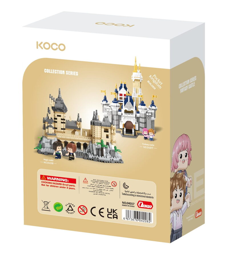 Stavebnice KOCO, to jsou velké příběhy v malých detailech. Sestavte si krásný model hradu. Skvělý tip pro procvičení jemné motoriky rukou. Balení obsahuje podrobný obrázkový návod. Tento detailně propracovaný zámek s věžemi, vlajkami a barevnými střechami potěší všechny malé i velké stavitele.