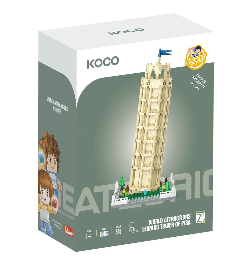 Postavte si slavnou Šikmou věž v Pise, jednu z nejznámějších památek Itálie, přímo u vás doma. Stavebnice KOCO nabízí detailní miniaturu unikátní stavby, která svou šikmou konstrukcí fascinuje celý svět. Z 548 plastových dílků sestavíte model, jenž bude ozdobou vaší sbírky a originálním kouskem na výstavku.