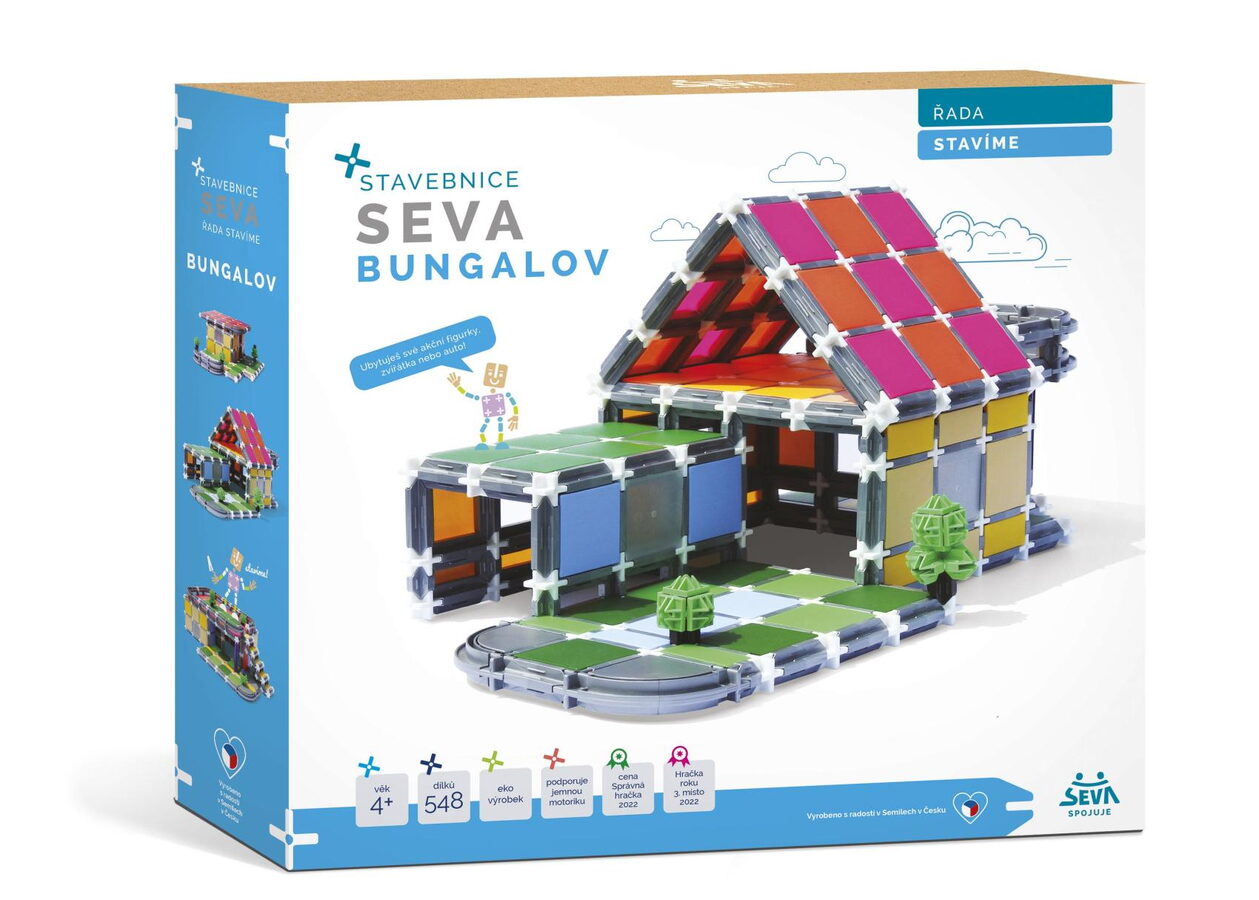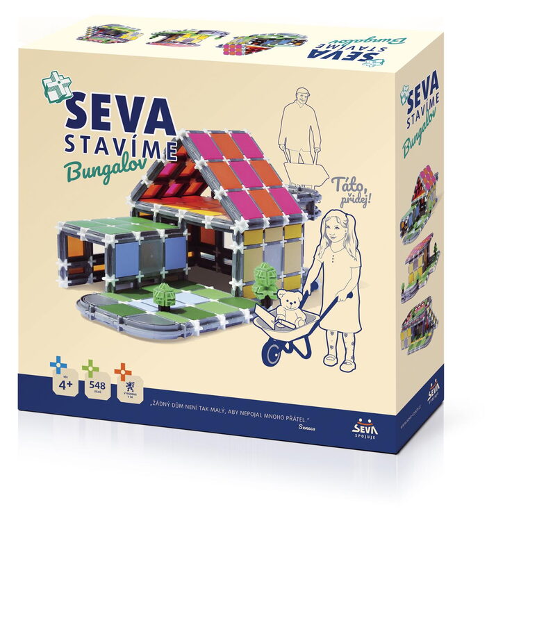 "Mami, tati! S bráchou jsme pro nás postavili nový dům!“ Se stavebnicí SEVA STAVÍME Bungalov postavíte mnoho variací na téma náš dům, náš hrad.... krásné je, že každý chceme bydlet jinak. Už tušíte, jak vy? Balení obsahuje 548 dílků.
