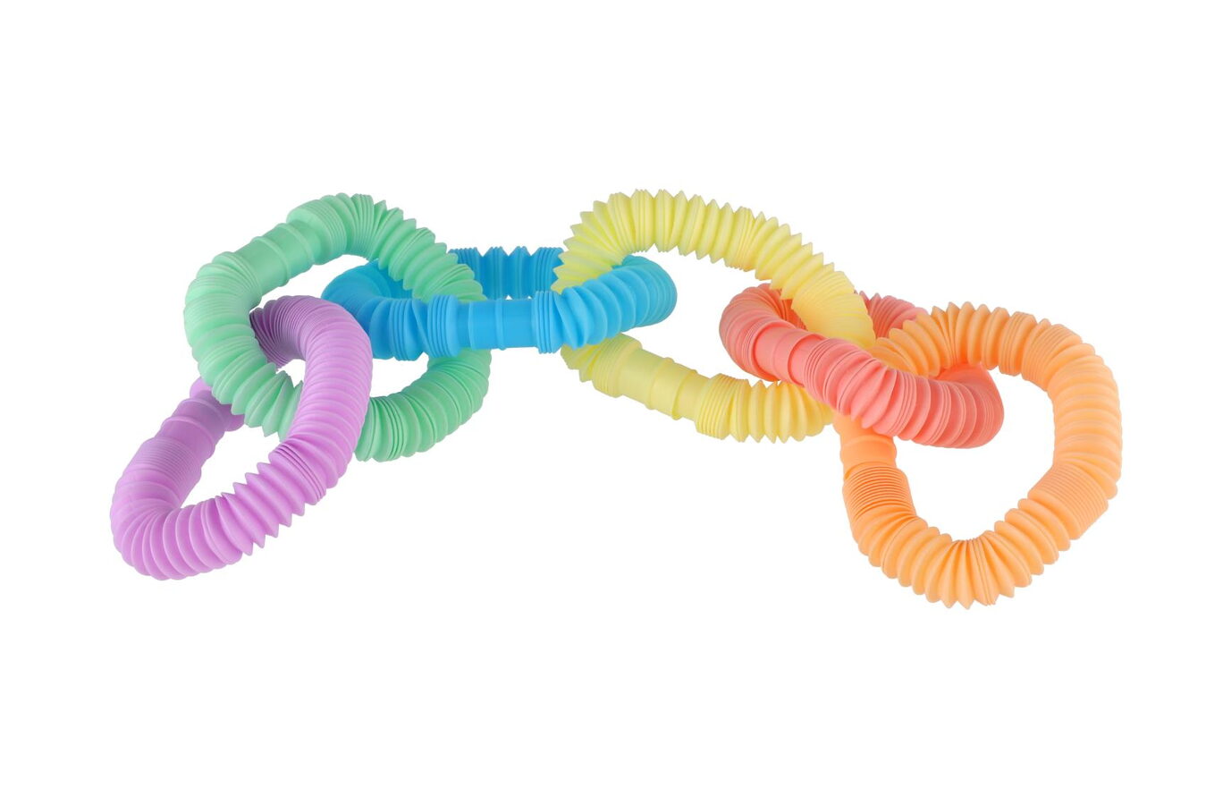 Tato senzorická stavebnice rozvíjí kreativitu dětí. Trubičky můžete jakkoliv natahovat a kombinovat dle vlastní fantazie. Zábava na několik hodin.