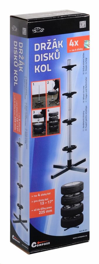 Na stojan lze umístit 4 kola o velikosti 13 - 17" až do šířky 225 mm.