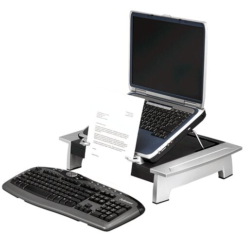 Stojan pod notebook se zásuvkami Office Suites STANDARD značky Fellowesje určený pro všechny LCD/TFT monitory o maximální váze 36 kg. Umožňuje nastavení monitoru v pěti pozicích od 10 do 15 cm a zmírňuje svalové napětí ramen a krku.
