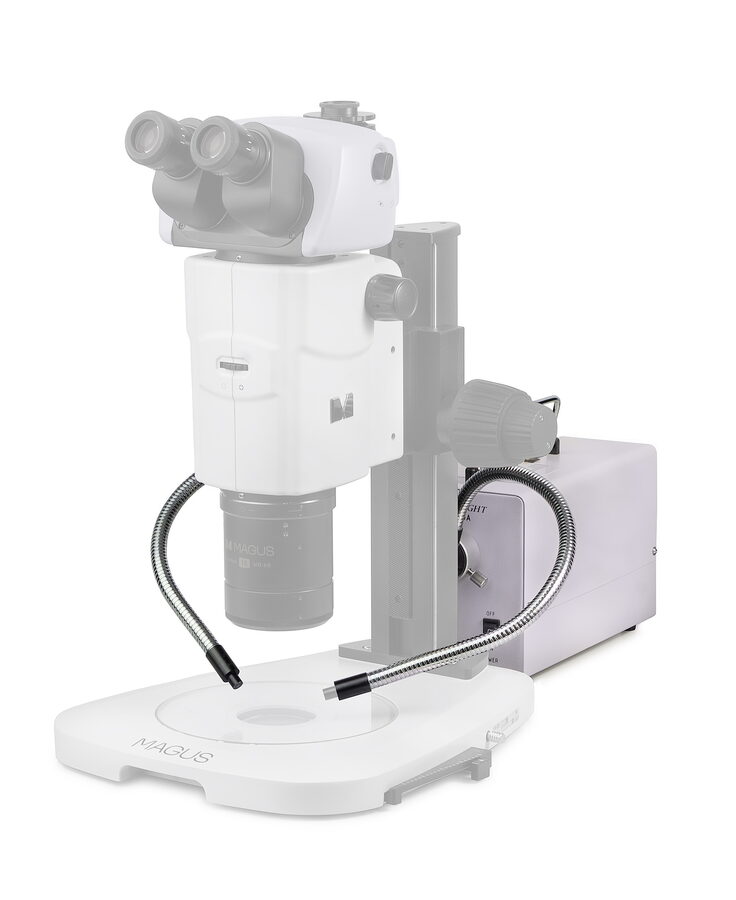 Světelný zdroj je v krytu svítilny. Světelný tok dopadá na objekt přes flexibilní duální světlovod. Poloha světlovodu se nastavuje tak, aby bylo dosaženo požadovaného úhlu světla, který zajistí ideální světelné podmínky pro dopad světla a tvorbu stínů během zkoumání vzorku. Poloha zůstává přednastavena a není třeba ji opravovat.