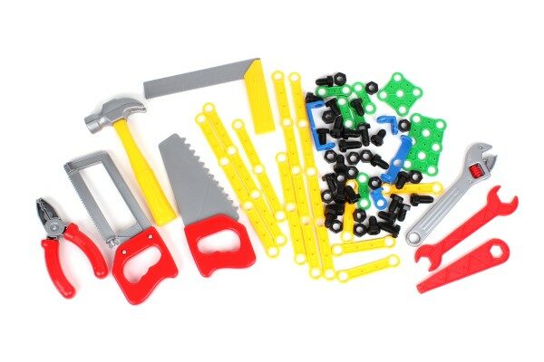 Velký dětský plastový ponk s nářadím a doplňky je velmi hezká hračka pro malé kutily. Hračka pro malé opraváře, kteří rádi pomáhají svým tatínkům při opravách v domácnosti. Tato velká sada obsahuje 9 ks nářadí a cca 61 ks doplňků. Sestavte si svůj vlastní ponk.