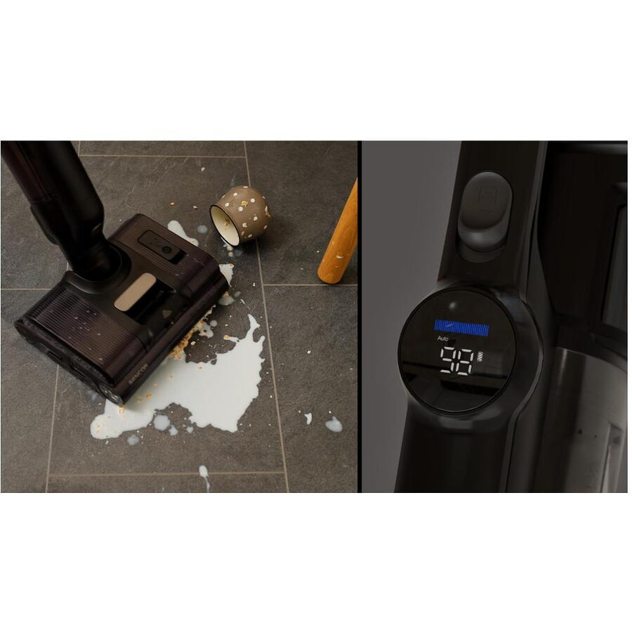 Čistič snadno vysaje suché i mokré nečistoty. Vylité pití či převrhnuté jídlo pro něj není žádný problém. Na jedno nabití může v režimu mokrého čištění pracovat až 30 minut.