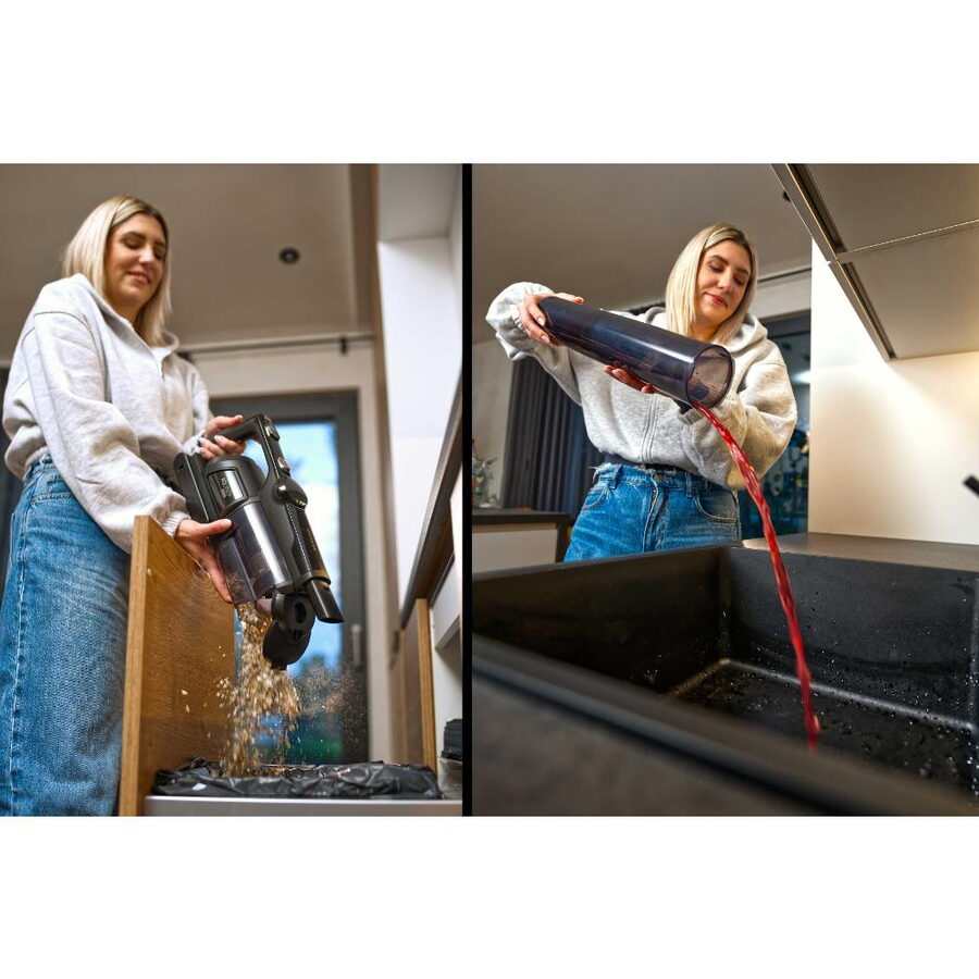 Díky voděodolnému motoru o výkonu 500 W se všechny suché i mokré nečistoty shromažďují do objemné 600 ml nádoby.