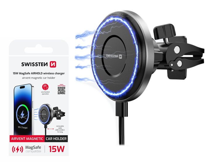 SWISSTEN MagSafe magnetický držák do ventilace auta s nabíjením 15W MagSafe comp