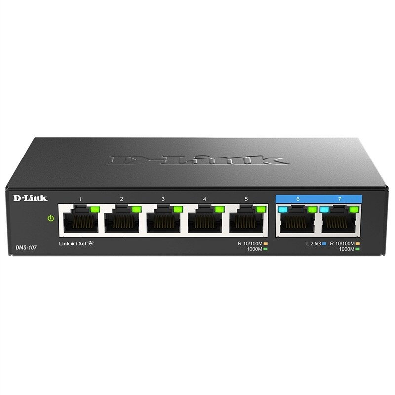 DMS-107 je multigigabit ethernetový přepínač, který poskytuje ultrarychlá připojení k páteři vaší sítě nebo k síťovému úložišti (NAS). Během pár minut snadno propojíte více počítačů a můžete začít sdílet připojení k internetu, soubory, hudbu a video v rámci vaší malé kanceláře nebo domácí sítě.
