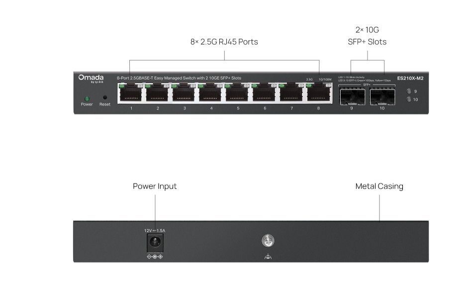 Pět 2,5Gb/s portů umožňuje plně využít potenciál moderních NAS serverů, pracovních stanic i WiFi 7 přístupových bodů. 10Gb/s SFP+ slot slouží jako vysokorychlostní uplink do páteřní sítě. Přepínací kapacita 80 Gb/s a přenosová rychlost 59,52 Mpps zajistí plynulý provoz i při vysokém zatížení.