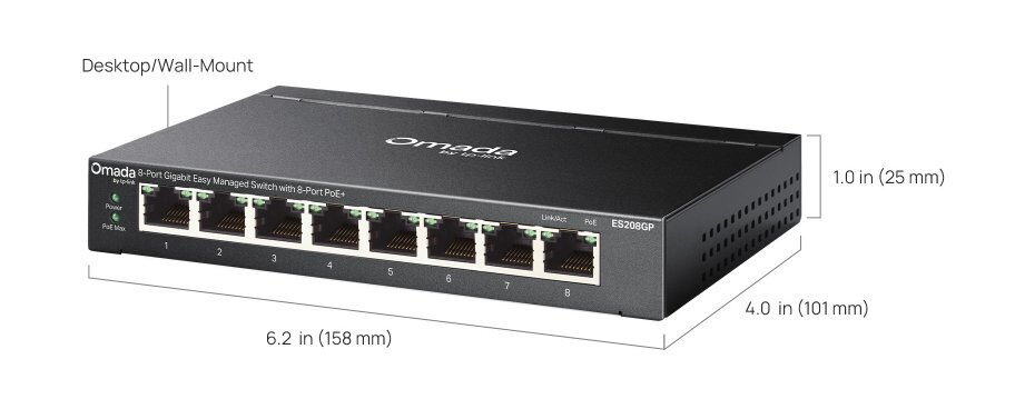 - Porty: 8× 10/100/1000 Mbps RJ45 s PoE+ (802.3af/at)