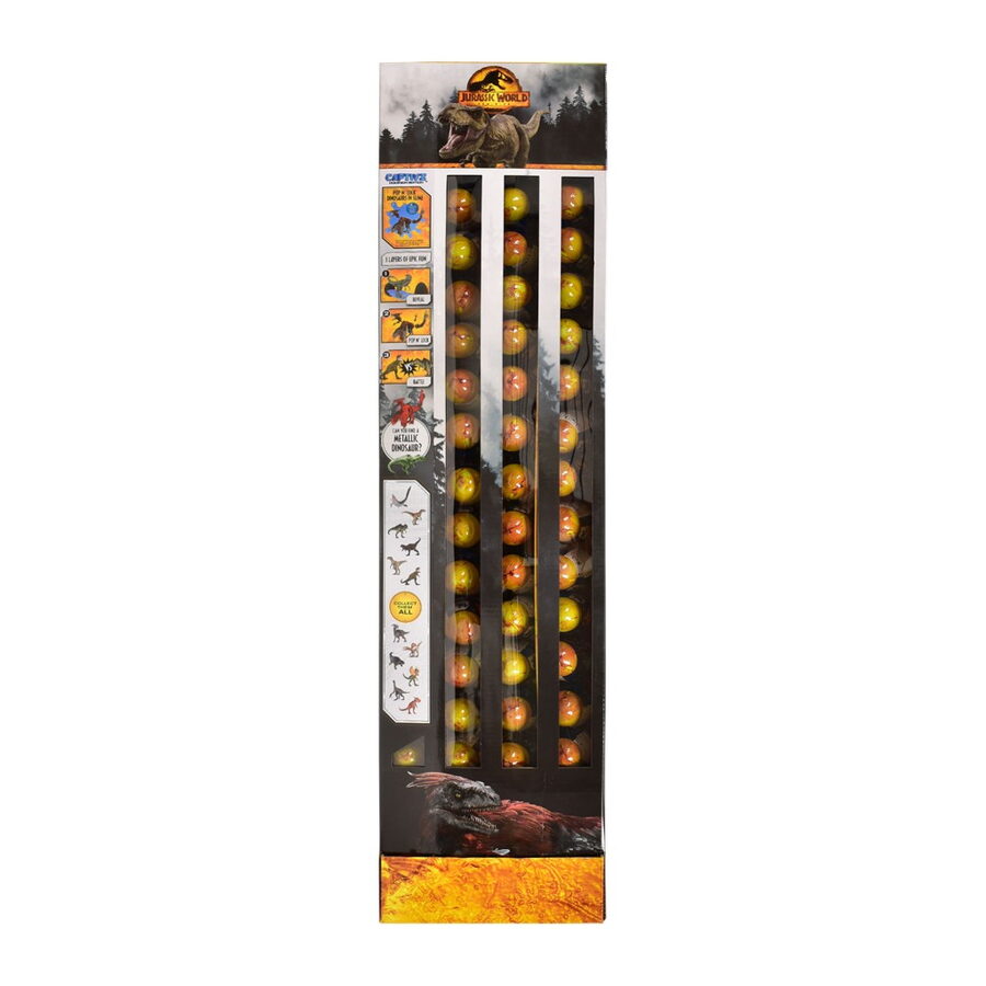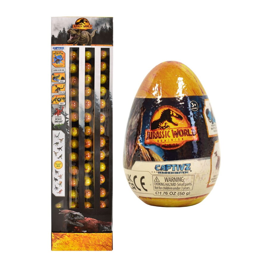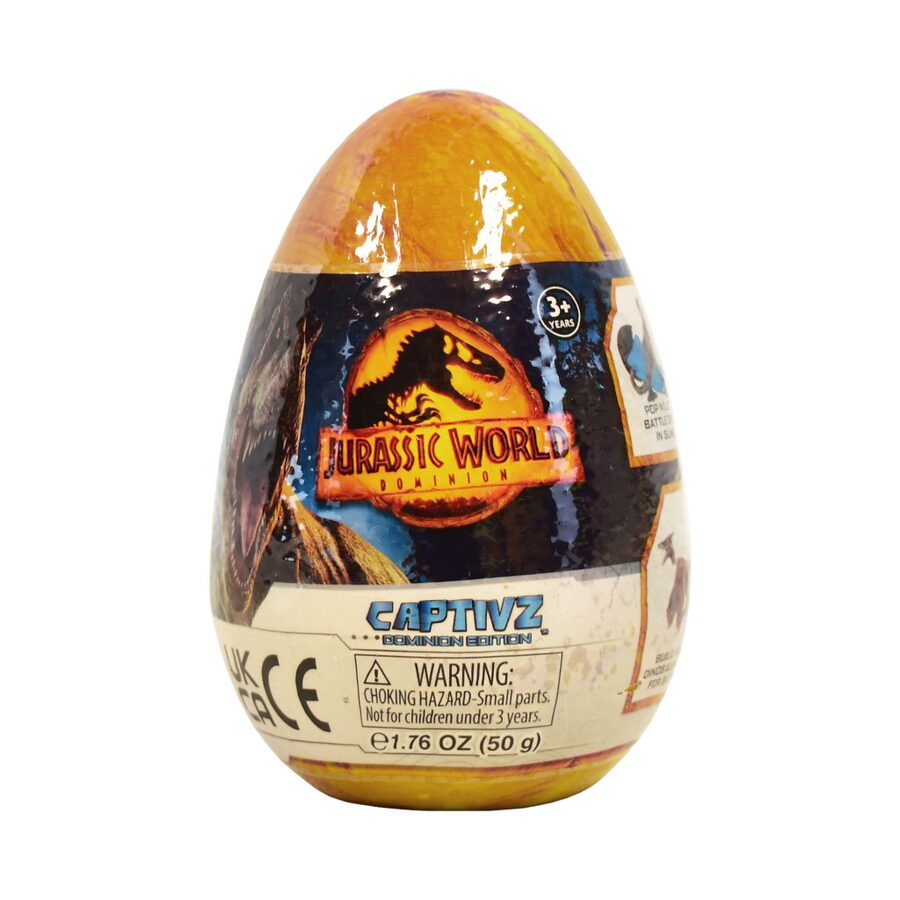 Tajemné vajíčko se slizem Jurský Svět – obsah – 1× sestavitelná figurka dinosaura, 1× Sliz (obvykle Jantarový nebo BioSyn Lab sliz), ve kterém je figurka ukryta.1× Bitevní žeton (Battle Token) a 1× Sběratelský průvodce. Postavy jsou inspirovány filmem Jurský svět: Nadvláda Sběratelská řada obsahuje celkem 15 různých dinosaurů, včetně nových, neviděných druhů z filmu a vzácných metalických (Ultra Rare) figurek.