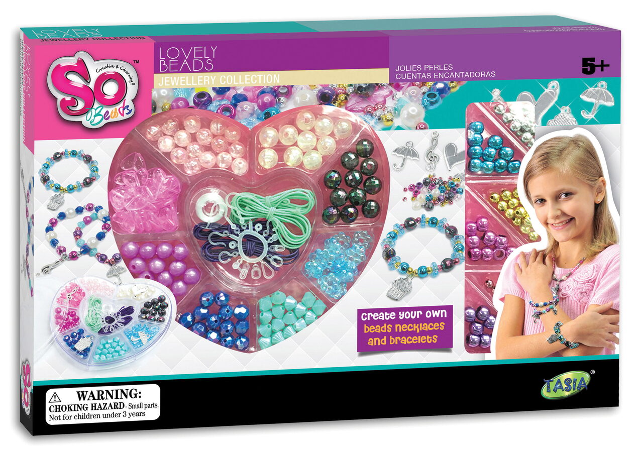 Sada korálků je ideální pro malé parádnice. Korálky v sadě mají různé tvary a různé velikosti, barvou však k sobě krásně ladí. Korálky jsou v designu perel. Sada obsahuje paletu plnou korálků, další paletku plnou stříbrných ozdob, plastovou dózu, bavlnky, šperkařské komponenty. - Věk 8+