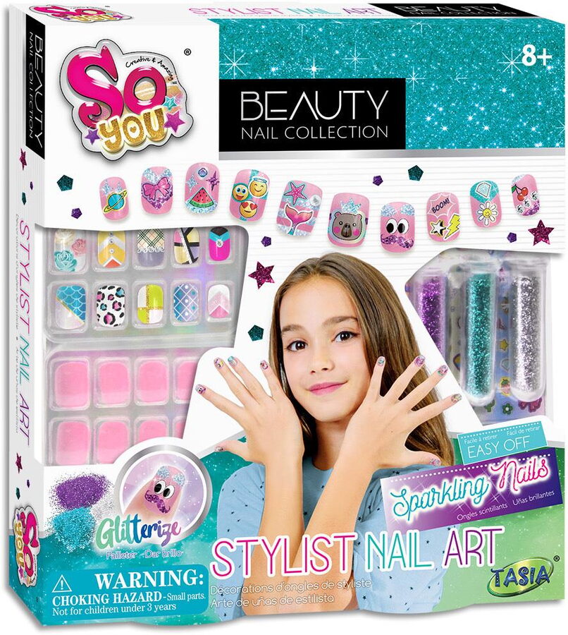 TASIA - Stylová sada Nail Art s třpytkami a samolepkami