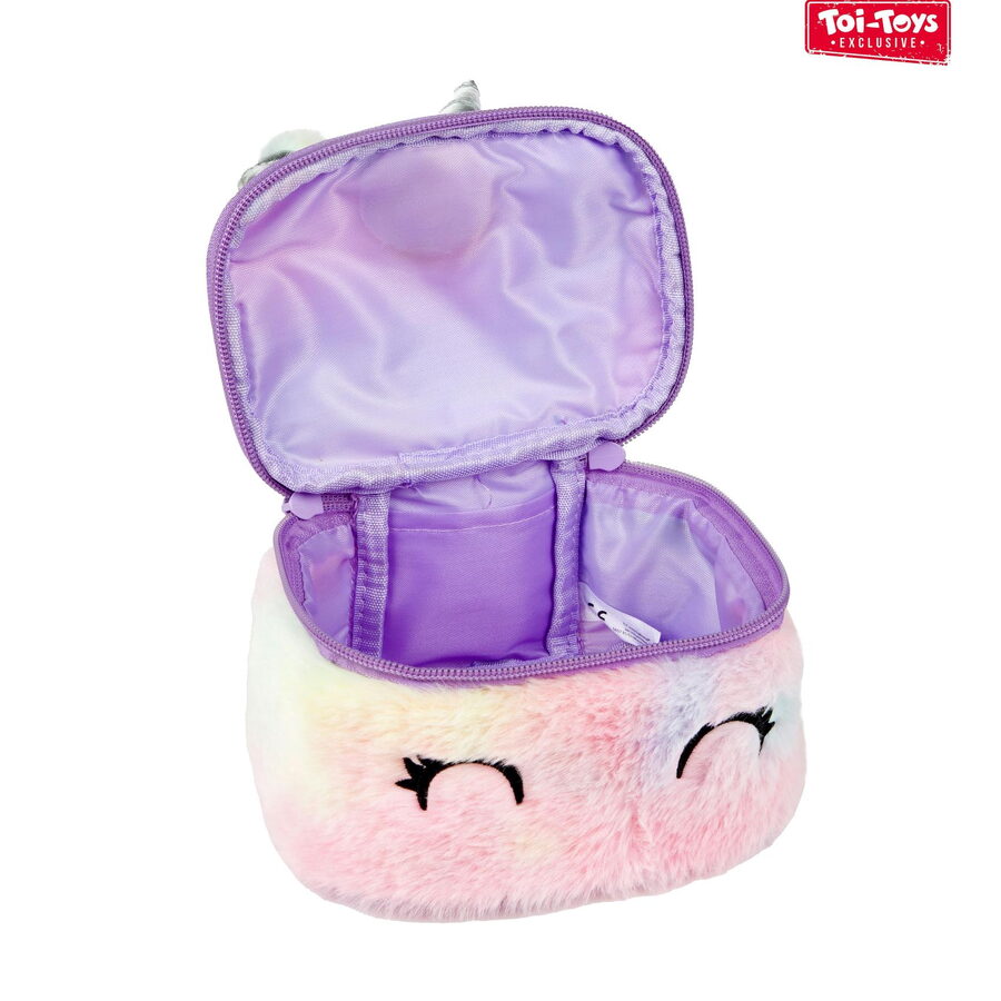 Slouží jako úložný prostor pro kosmetiku nebo jiné drobnosti. Tato taška je vyrobena z jemného plyšového materiálu a má roztomilý design jednorožce, což ji dělá oblíbenou mezi dětmi, které milují kouzelné a barevné postavičky. S tímto jednorožcem mohou děti nejen uschovávat své kosmetické potřeby, ale i používat ji jako stylovou taštičku na hračky, osobní drobnosti nebo školní potřeby.