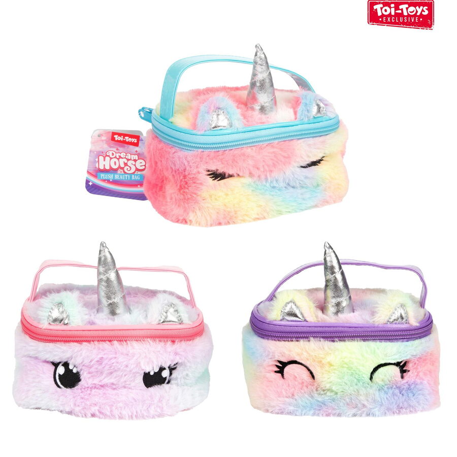 Taška kosmetická jednorožec plyšová 16x12cm 3 barvy