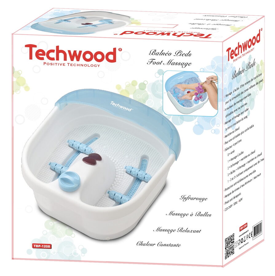 Masážní přístroj na nohy Techwood TBP1208 nabízí relaxační masáž s bublinkovým efektem a intenzivními víry pro stimulaci reflexních zón chodidel. Díky čtyřem odnímatelným masážním válečkům a infračervené funkci podporuje mikrocirkulaci krve a uvolnění svalů.