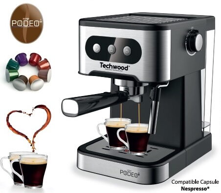 Techwood TCA156EXN spojuje klasický způsob přípravy espressa s moderním designem a praktickými funkcemi. Váš každodenní šálek kávy bude chutnat jako z kavárny.