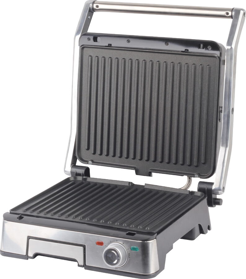 Kontaktní gril Techwood TGD2018D, nerez, výkonem 2000 W a odnímatelnými deskami je ideální pro přípravu panini, masa, zeleniny i sendvičů. Nabízí možnost otevření až na 180°, což z něj dělá univerzální gril pro každodenní použití.