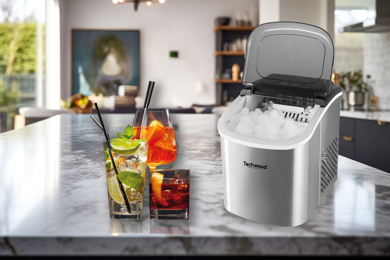 Výrobník ledu Techwood TMAG1310 je ideální volbou pro každého, kdo si chce užít studené nápoje kdykoli během dne. Kompaktní zařízení v elegantním nerezovém provedení dokáže vyrobit až 12 kg ledu za 24 hodin a je vybaveno nádržkou na vodu o objemu 1,3 litru.