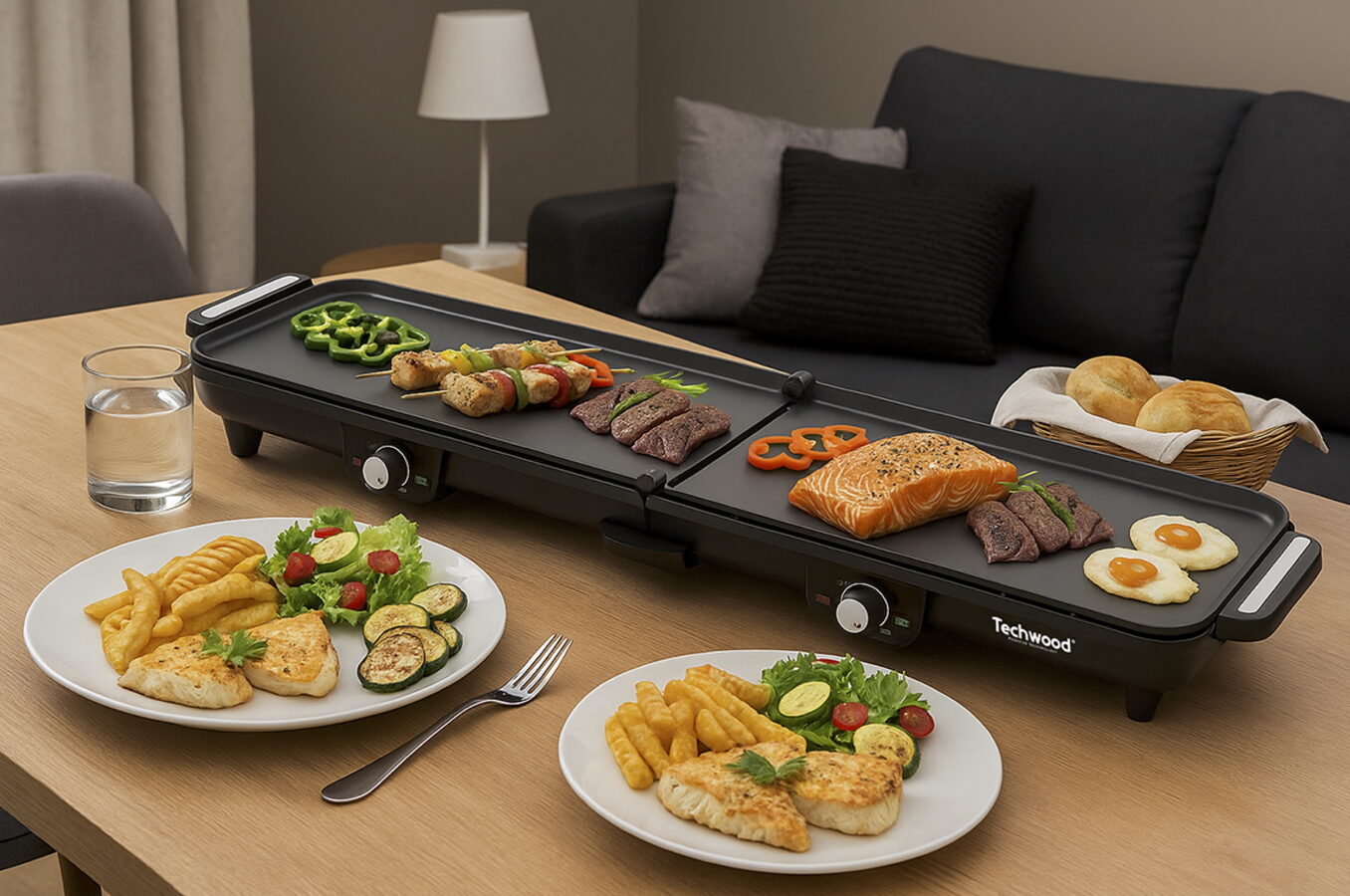 Techwood TTP4545PL přináší maximální flexibilitu, vysoký výkon a zdravý způsob přípravy pokrmů – ideální řešení pro všechny, kteří chtějí grilovat chytře, bez zbytečného tuku a s maximální plochou.