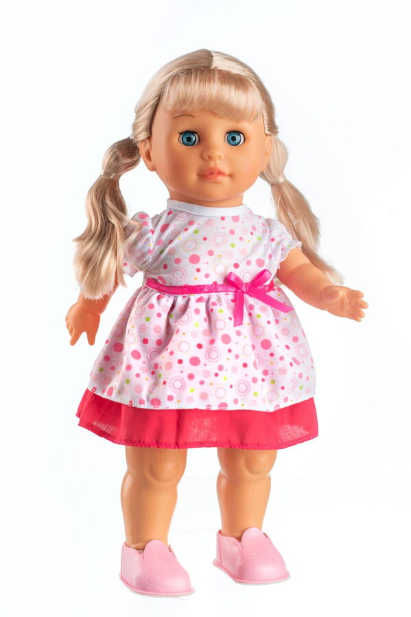 - Chodící a mluvící panenka Barunka má krásné dlouhé vlásky, které holčičky mohou česat a vyrábět nejrůznější veselé účesy. Po stisknutí tlačítka na bříšku začne panenka chodit a zpívat: "Ahoj, já jsem Barunka. Zazpíváme si spolu?...Šla Nanynka do zelí…, Pod naším okýnkem..., Červený šátečku...