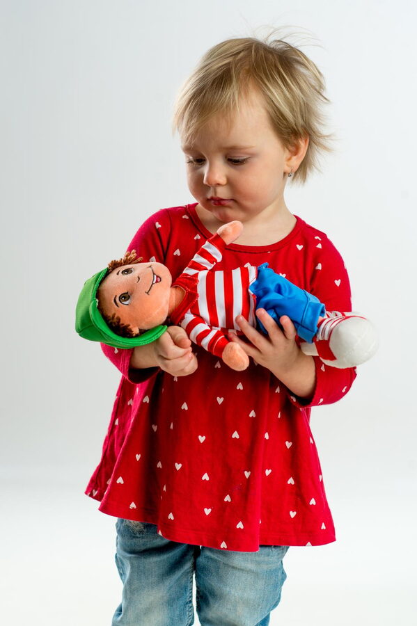 Hadrový kluk Honzík po zmáčknutí bříška povídá: "Ahoj, já jsem Honzík a naučím tě básničky" a říká básničky: "Koulela se brambora..., Čistím zoubky..., Mám dvě ouška k naslouchání..."