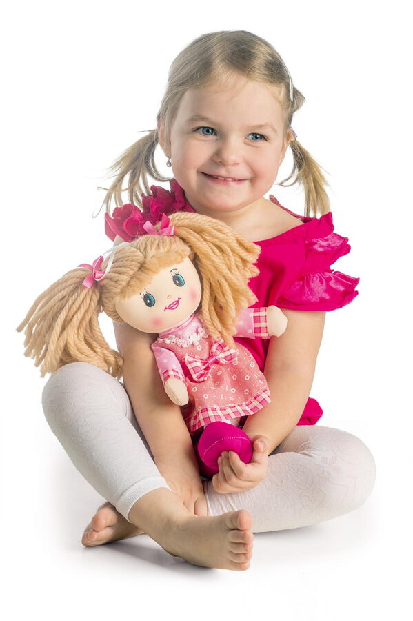 Kvalitní hadrová panenka, která je měkoučká a ideální pro děti do postýlky, jako kamarádka na spaní. Děťátko si nebude připadat v postýlce osamoceně a bude se mu lépe usínat. Materiály jsou příjemné na dotek. Velikost: 40 cm. Vhodné od narození.