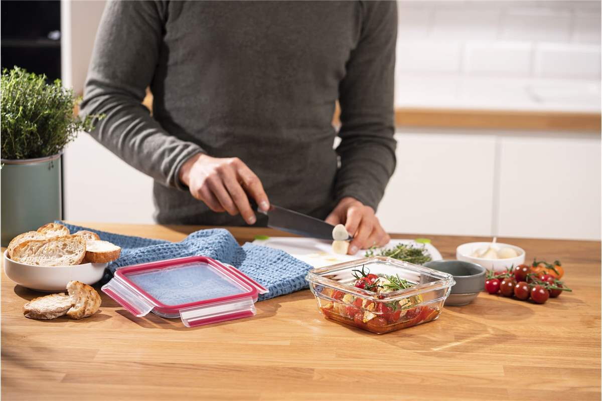 Vylepšený design MasterSeal zahrnuje posílený lem a speciální okraj, který zajistí bezpečné, těsné a stabilní vrstvení nádob stejné velikosti a také ještě robustnější skleněnou konstrukci, abyste ušetřili místo v kuchyňských skříňkách.