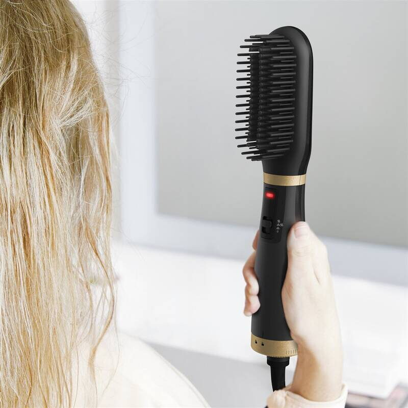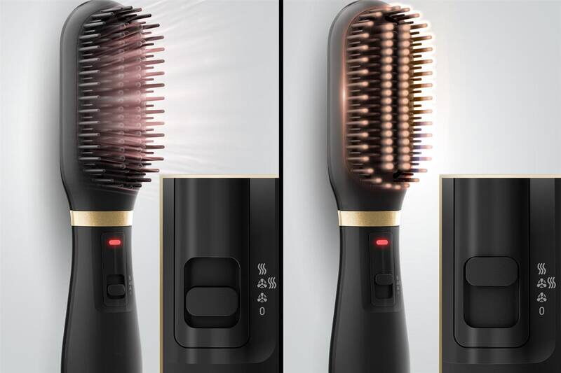 Jedním tahem můžete vlasy vysušit, narovnat i uhladit, díky tomu je úprava vlasů velmi rychlá. Kartáč je možné použít jak na mokré, tak i na suché vlasy.