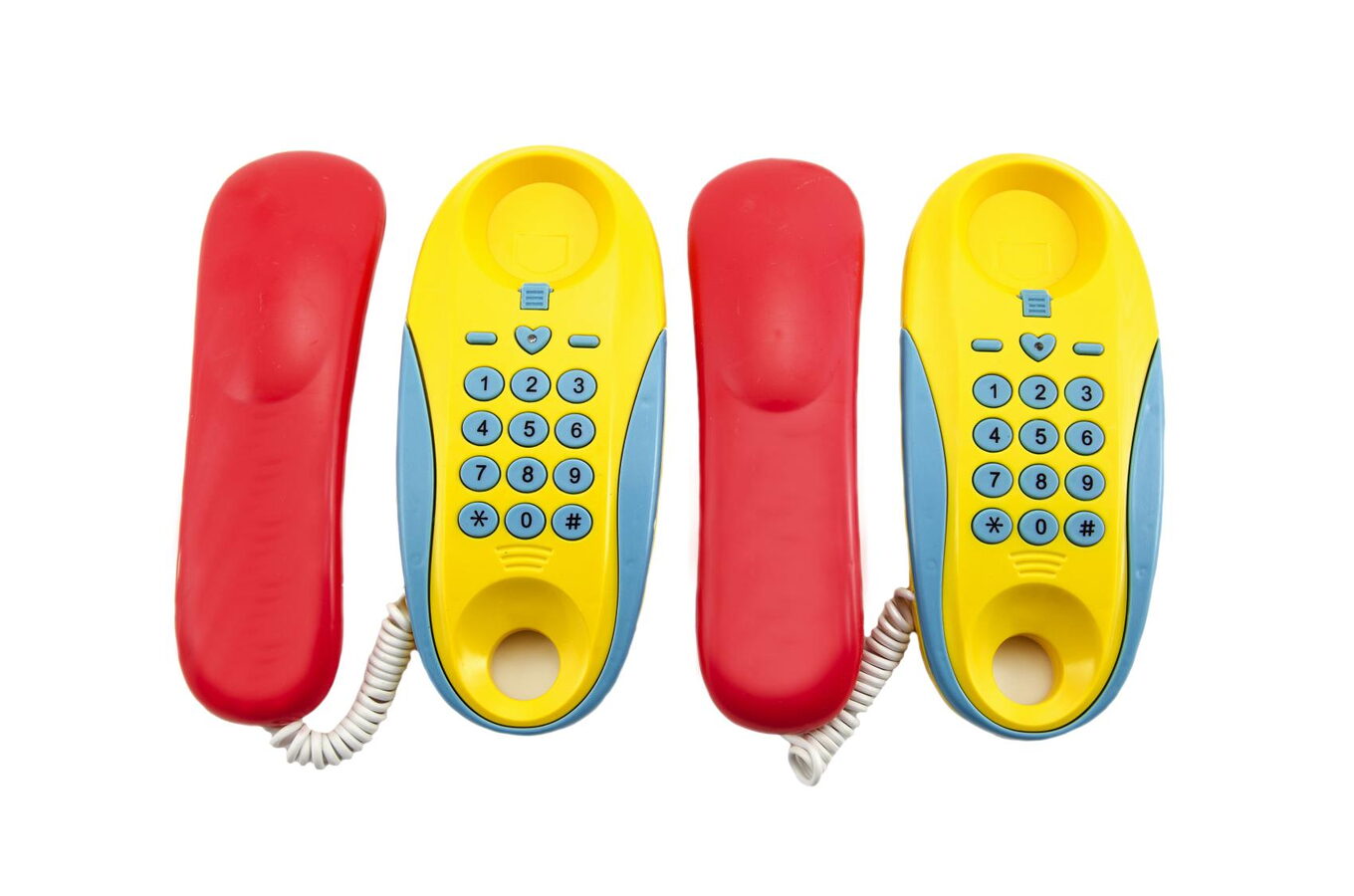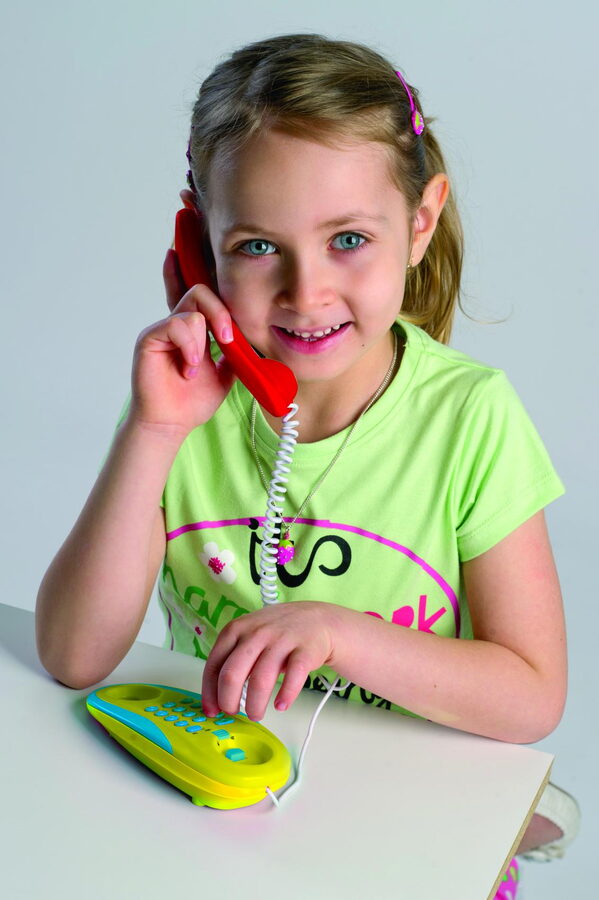 Funkční telefony pokojové na baterie. Dvojice telefonů z pokoje do pokoje jsou spojené 7m dlouhým kabelem. Hračka může sloužit nejen k dětským hrám, ale také ke spojení třeba s maminkou v kuchyni. Stačí jen na jednom přístroji zmáčknout číselník a druhý začne vyzvánět.
