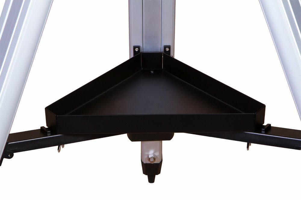 Teleskop Levenhuk Skyline PLUS 130S k vám přijde s bohatou výbavou příslušenství. V balení najdete vše potřebné pro úspěšné pozorování - dva okuláry s různou ohniskovou vzdáleností, 2x objektiv Barlow, optický hledáček s 6-násobným zvětšováním. Spolu s teleskopem získáte robustní a spolehlivý hliníkový stativ se zásobníkem pro příslušenství. Teleskop můžete umístit i na drsný nerovný povrch, díky nožičkám s nastavitelnou výškou.