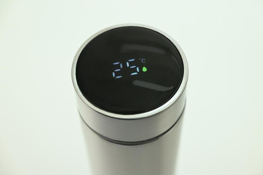 Termoska je vyrobena z nerezové oceli SUS304, která je známá svou odolností. Díky vakuové konstrukci zachová teplotu nápoje po delší dobu. Digitální teploměr ve víku zobrazí aktuální teplotu tekutiny uvnitř. Vyjímatelné sítko se hodí například pro přípravu čaje. Víčko s těsněním a tlačítkem pro snadné nalévání zajišťuje pohodlné používání bez rizika úniku tekutin.