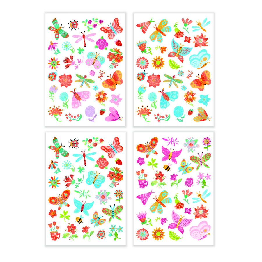 Ozdobte si své tělo krásným barevným tetováním. Vystřihněte vybraný obrázek. Přitiskněte ho na čistou a suchou pokožku Navlhčete ho vodou a po 30ti sekundách odstraňte papírek. Tetování lze odstranit mýdlem nebo olejíčkem. Vybrat si můžete z několika jarních motivů. Obsahuje 4 listy tetovaček.