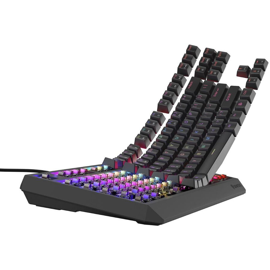 Čitelné. Přesně takové jsou klávesy na klávesnici Genesis Thor 230 TKL. Při jejich navrhování jsme se zaměřili nejen na jejich zpracování, odolnost a materiál příjemný na dotek, ale také na čitelnost laserem vyřezaných doplňkových znaků. Od nynějška jsou ještě čitelnější a umožňují pohodlnější práci s plným, přizpůsobitelným podsvícením každé klávesy zvlášť.