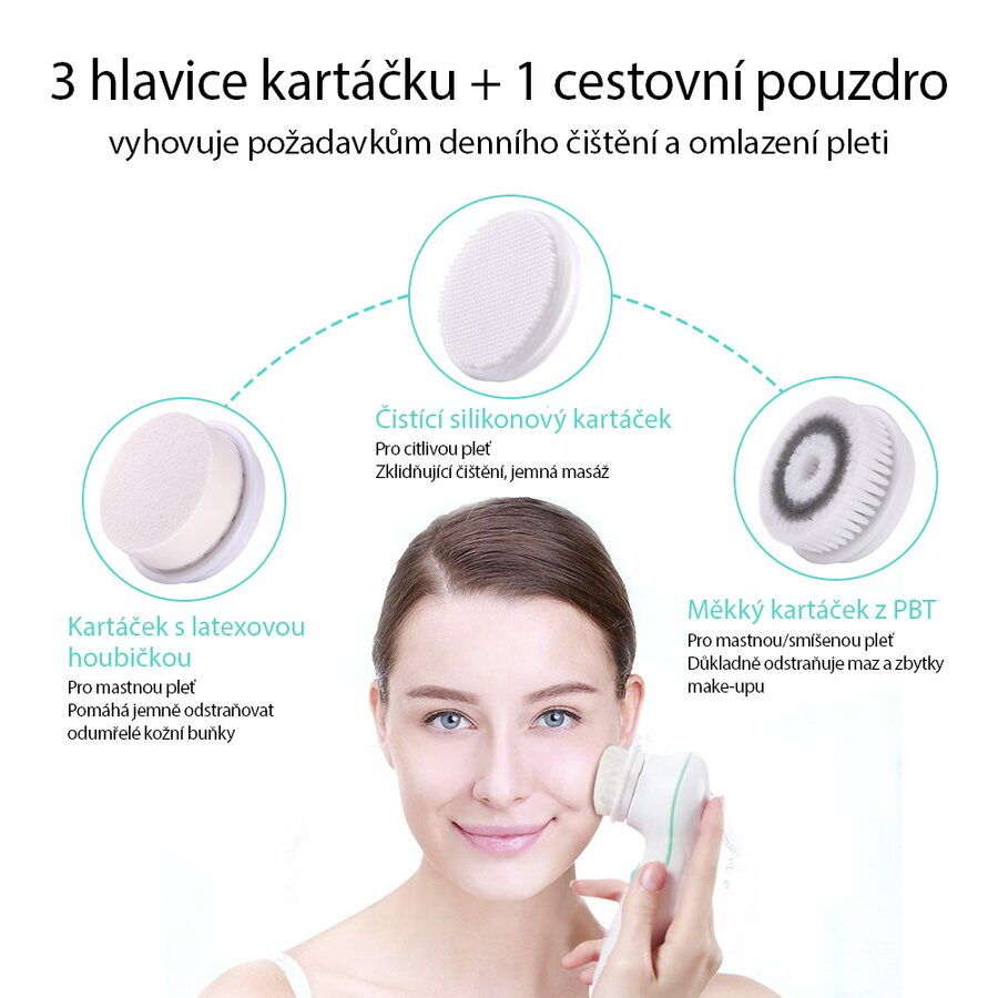 - Silikonový kartáček pro citlivou pokožku, masíruje pleť a zlepšuje krevní oběh