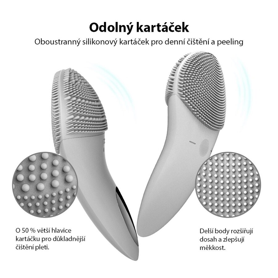 - Oboustrannou čisticí hlavu lze použít pro každodenní čištění a exfoliaci.