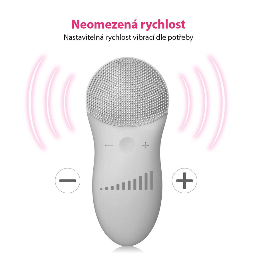 - Rychlost vibrací je nastavitelná pro přizpůsobení různým potřebám pokožky.