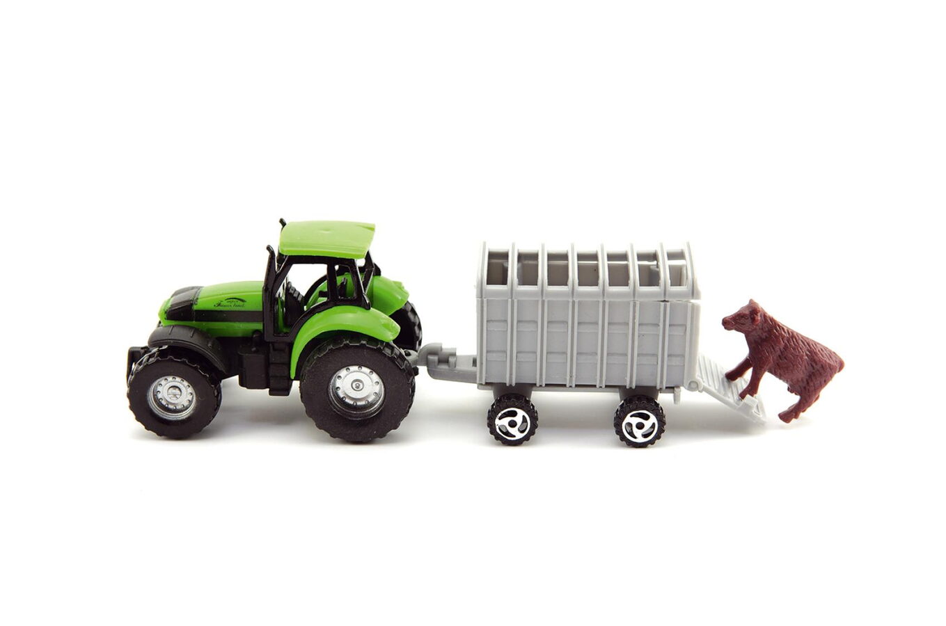Rozšiřte svoji sbírku zemědělské techniky o tento plastový model traktoru s přívěsem.