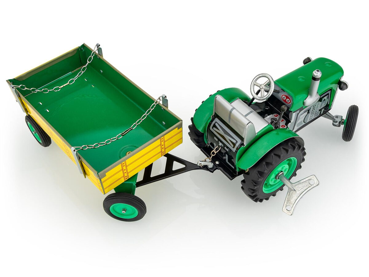 Pohyb všech traktorů zajišťuje unikátní pérový strojek natahovaný klíčkem.